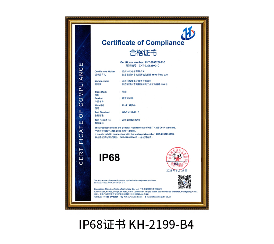 IP68证书 KH-2199-B4
