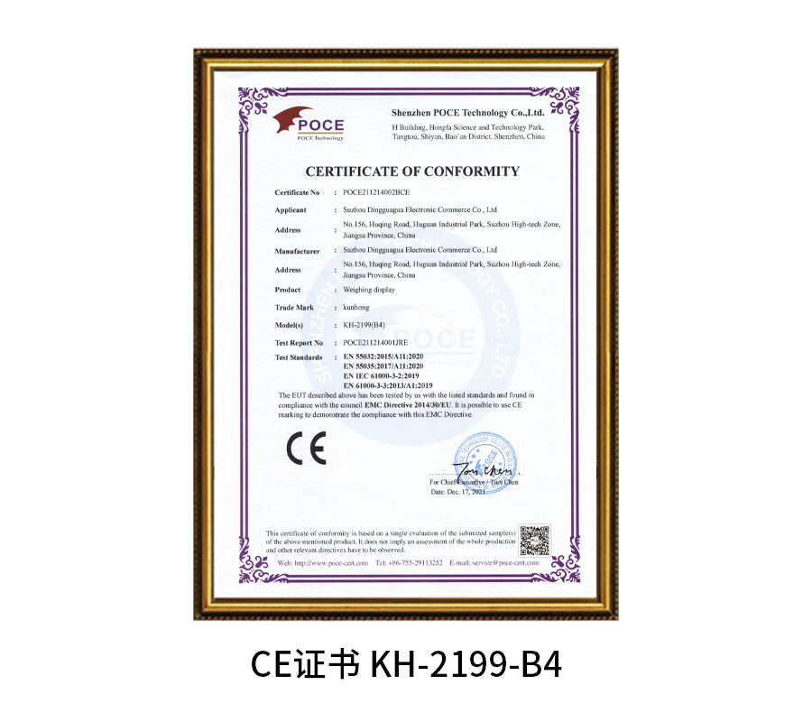 CE证书 KH-2199-B4