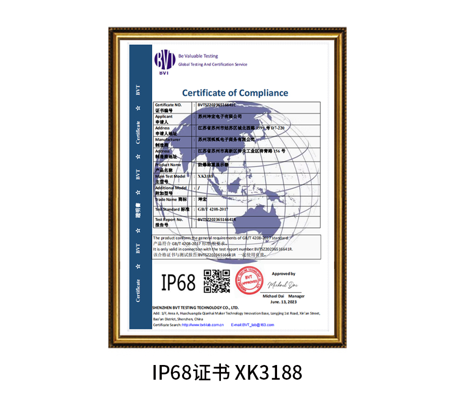 IP68证书 XK3188