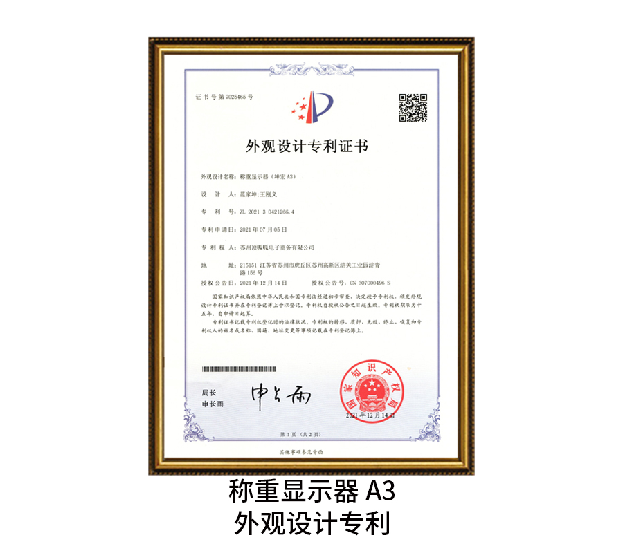 称重显示器A3外观设计专利